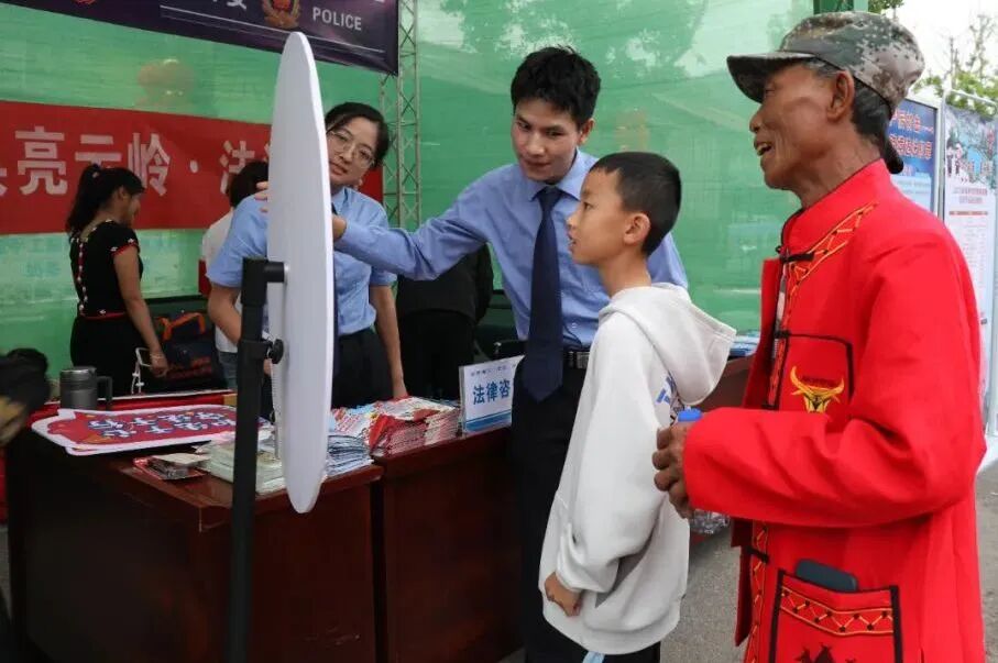 普法现场 检察人员在人群较为集中的美食街 支起了“普法小摊” 通过发放宣传资料、解答咨询等方式 向过往的游客和群众 积极宣传 防范电信诈骗、消费者权益保护 妇女儿童权益保护、禁毒等法律知识 同时还设置了 法律知识有奖竞答环节 通过发放法治小礼品 增添群众学法的积极性 在潜移默化中将法律知识融入群众心中