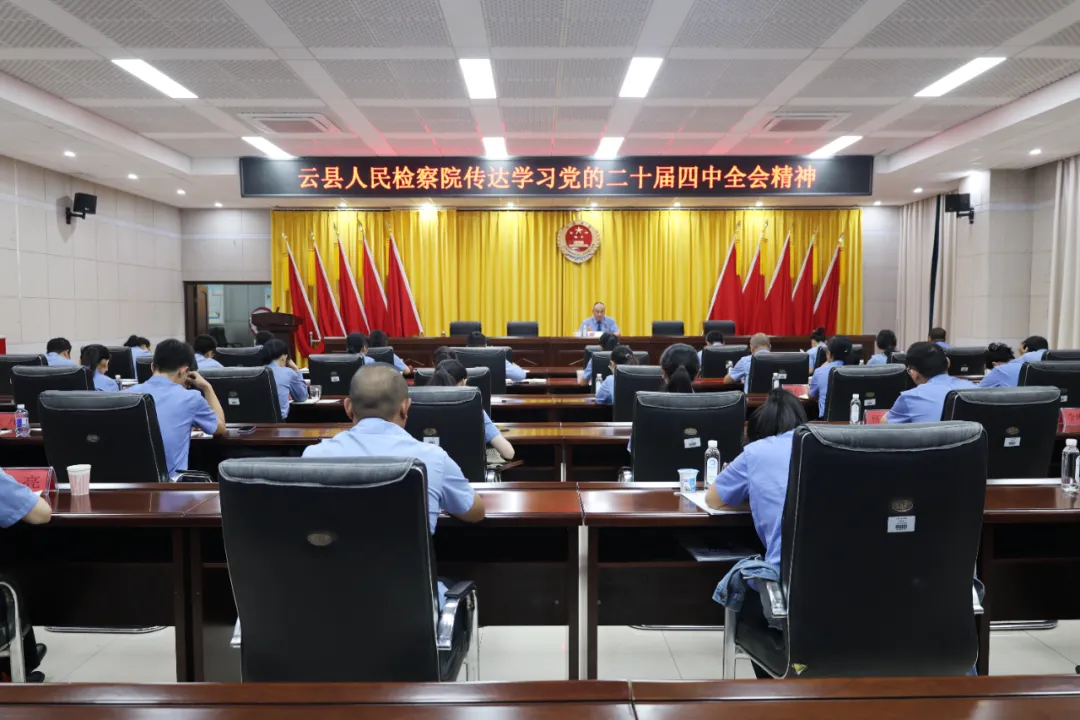 近日,云县人民检察院召开全院干警大会,认真传达学习贯彻党的二十届四中全会精神,研究贯彻落实工作。党组书记、检察长杨腾龙主持会议。