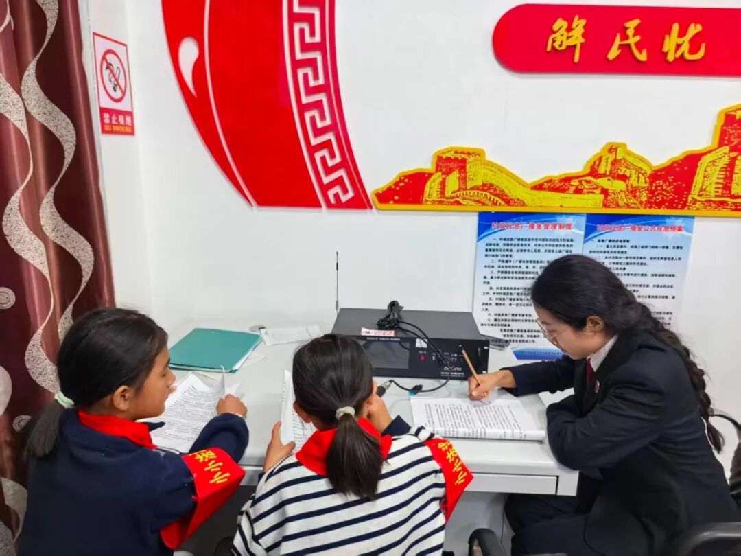 活动现场还举行了“小小法治宣传员”聘任仪式,6名同学接过聘书,正式成为邦界村法治宣传的“小使者”,肩负起了在校园和家庭中传播法治知识的责任。暮色四合,法治广播乘着夕照的余韵,在村落上空徐徐铺展。新受聘的“小小法治宣传员”们轮流来到村委会广播站,担任起普法广播员。同学们用稚嫩却清晰的声音播报与生活相关的法律小常识,让法治声音传遍村庄的每个角落。