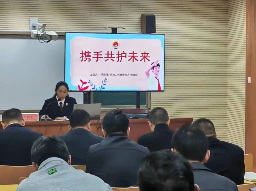 为全面推进“利剑护蕾”专项行动,提升教职工及学生的法治意识,3月15日,永德县人民检察院“青芒果”未检工作室负责人杨鲁蛟应县教体局邀请,为50余名县直各学校(园),乡(镇)中学校长、书记、园长、民办幼儿园负责人带来了一堂内容丰富的“法治课”。